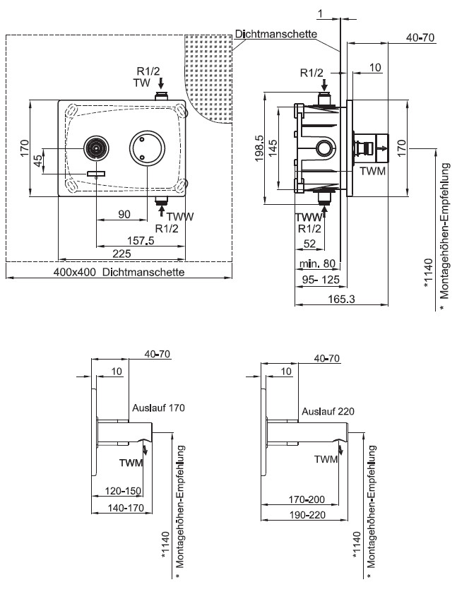 | Geeignet für Waschtische (Einbau in die Wand) | ja |