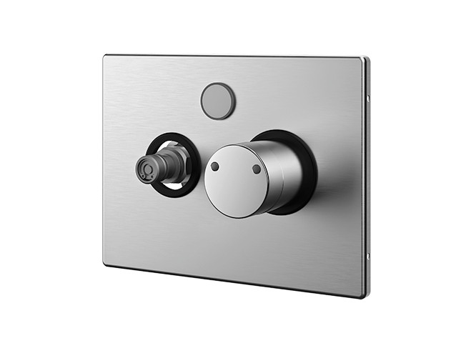 CONTI+ CONGENIAL FIT Wandarmatur Unterputz eckig Edelstahl, elektrisch, Piezo-Taster, CNX-Betrieb, Thermostat, Edelstahl, DN15, FertigMontage-Set