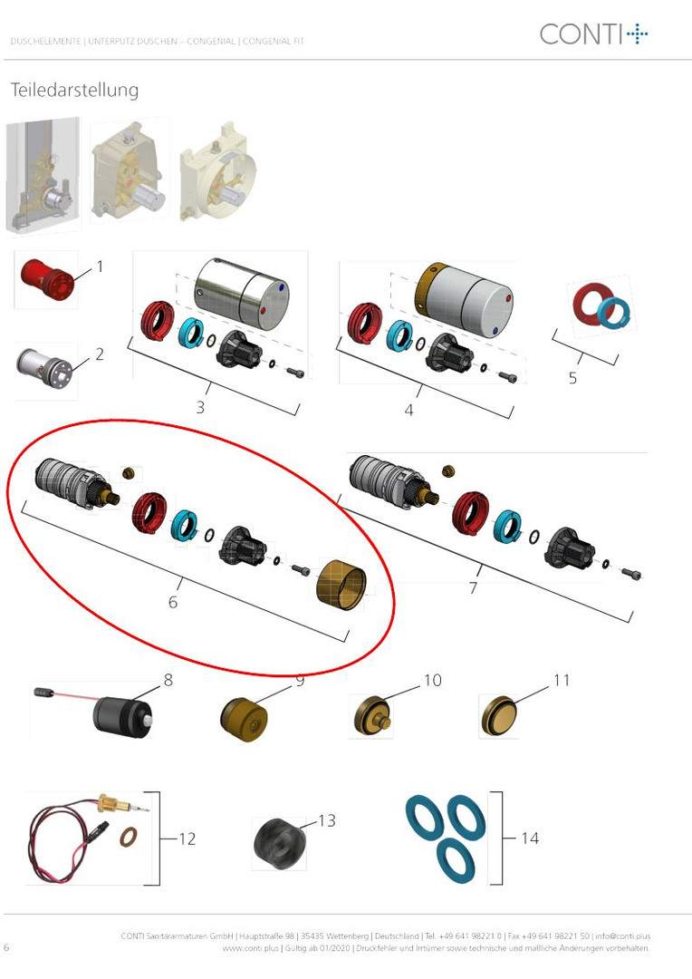 CONTI+ Thermostatkartusche Set für Duschen bis 08/2018, für CONTI+ CONGENIAL / CONGENIAL FIT / CONFRESH