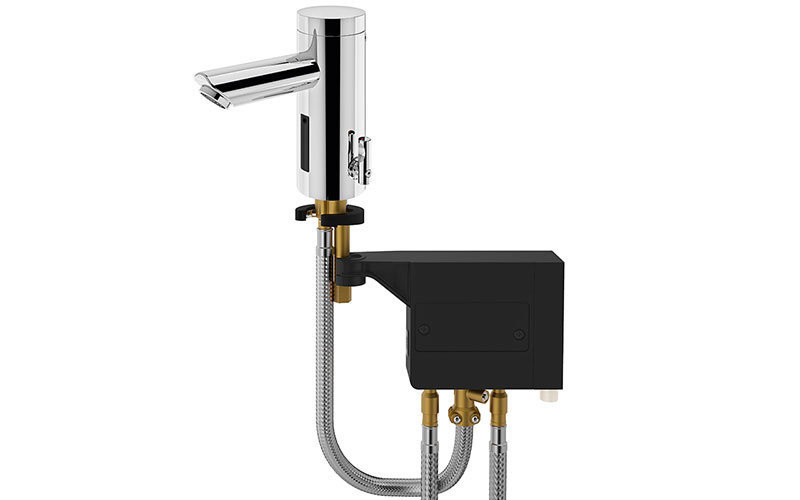 CONTI+ lino PRIMUS Waschtischarmatur elektrisch, Infrarot-Sensor, Thermostat-E, Steckernetzgerät, mit elektrischer Mischung, KaltWasserHygiene-Spülung, Chrom, L40