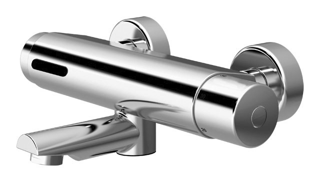 CONTI+ lino Wandarmatur AufPutz elektrisch, Infrarot-Sensor, Batteriebetrieb, Thermostat, Ausladung 200 mm, Chrom, W45