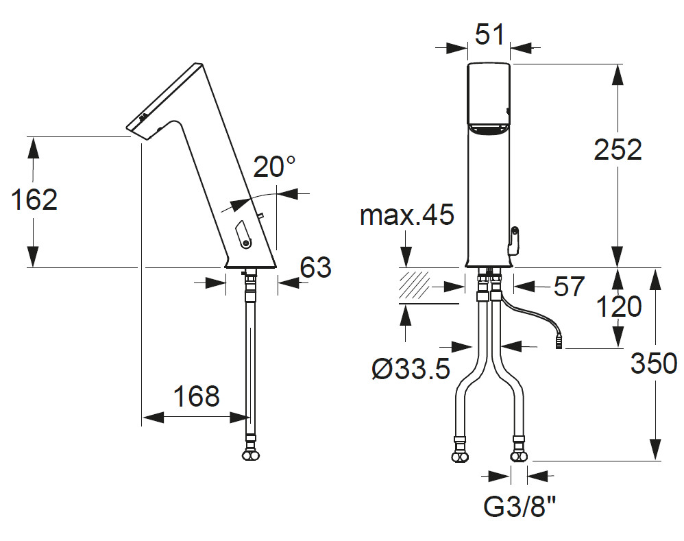 CONTI+ ultra Waschtischarmatur elektrisch, GH10, Infrarot-Sensor, VarioConnect, mit Mischung, Chrom, G3/8''