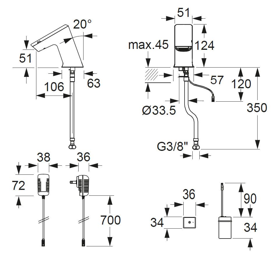 | Aufbauhöhe Unterkante Hahnauslass | 51 mm |