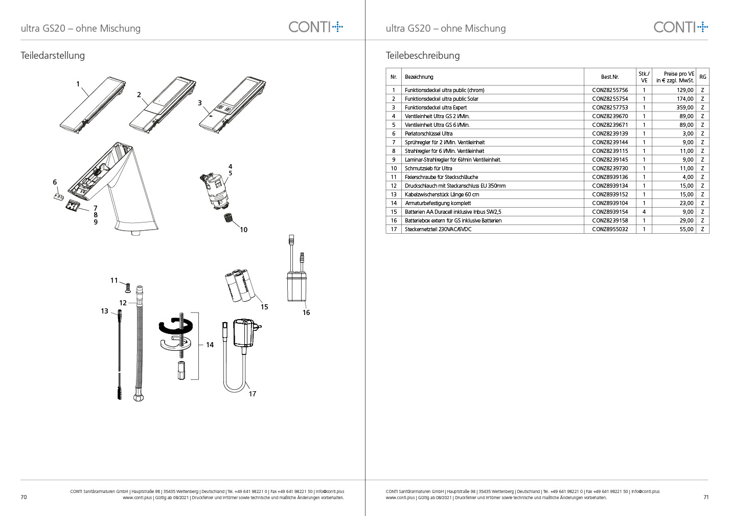 CONTI+ ultra Waschtischarmatur elektrisch, Infrarot-Sensor, VARIOconnect mit Batterie, ohne Mischung, Chrom, GS20