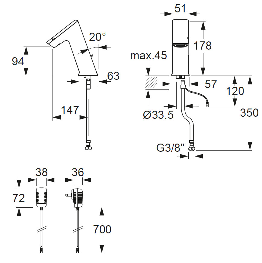 CONTI+ ultra Waschtischarmatur elektrisch, Infrarot-Sensor, VARIOconnect mit Steckernetzgerät, ohne Mischung, Chrom, GM20