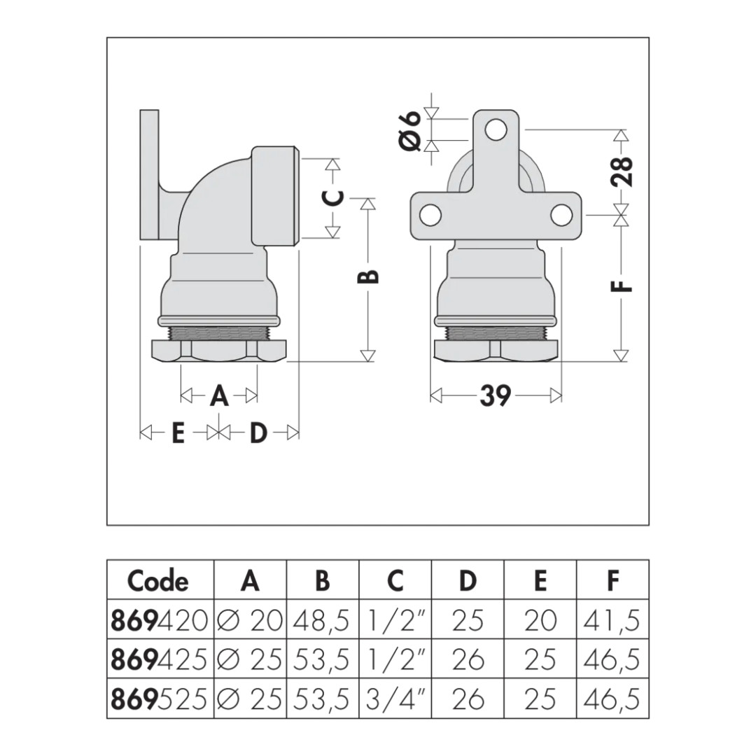 Caleffi Winkelverschraubung Ø 25 mm x 3/4" IG, Messing, mit Wandscheibe, für PE-Kunststoffrohre CA869525