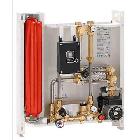 Caleffi Wohnungsstation SATK 30 25-45 und 45-75 °C, Plattenwärmetauscher 40 kW, Wandmontage, dezentral