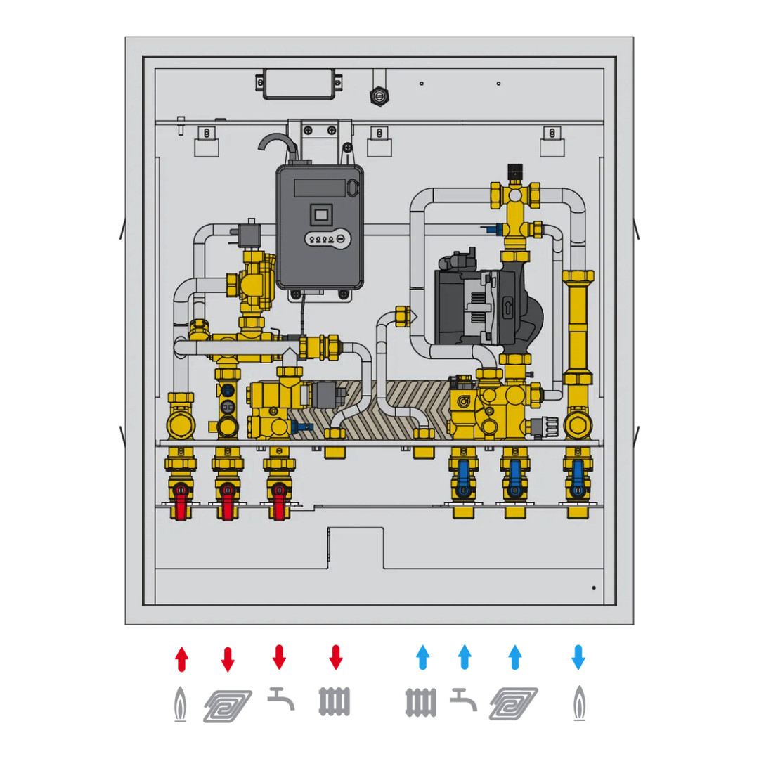 Caleffi Wohnungsstation SATK 50 25-45 °C, Wärmetauscher 40 kW, UP, dezentral