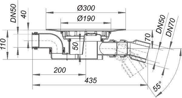 Dallmer Ablaufgehäuse 55 Serie 15 DN 50/70, Zulauf DN 50, 180Grad schwenkbar