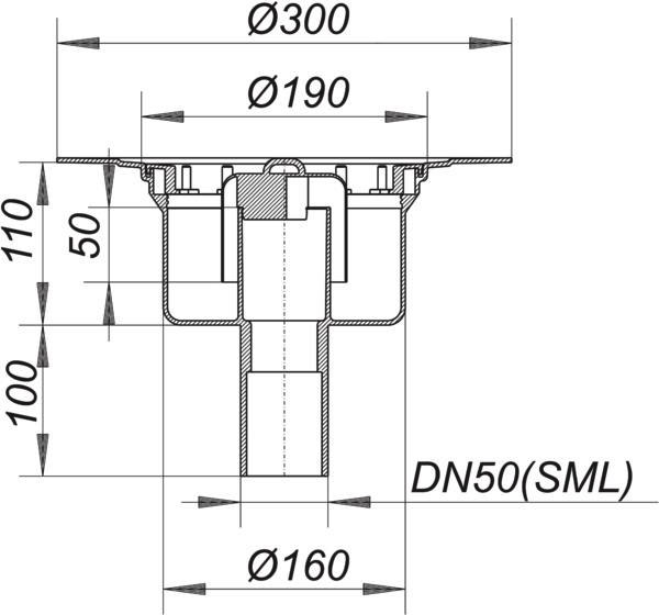 nach DIN EN 1253, Ablaufstutzen senkrecht, für den Anschluss von SML-Gussrohren, herausnehmbarer Geruchs- und Reinigungsverschluss, Sperrwasserhöhe 50 mm (gemäß DIN EN 1253), Bauschutzdeckel, Polypropylen, hochschlagfest