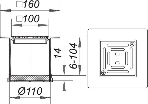 Dallmer Aufsatz PVC-EN 10 Serie 10 100 x 100 mm, PVC, Rost Edelstahl 1.4301, verschraubt