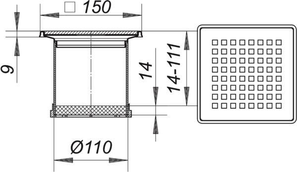Dallmer Aufsatz Quadra S 10/150 Serie 10 150 x 150 mm, Edelstahl, Design-Rost, massiv 5mm