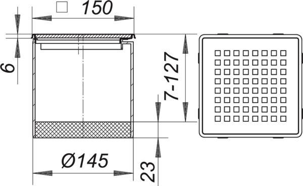 Dallmer Aufsatz Quadra S 15 Serie 15 150 x 150 mm, Rost Edelstahl, massiv