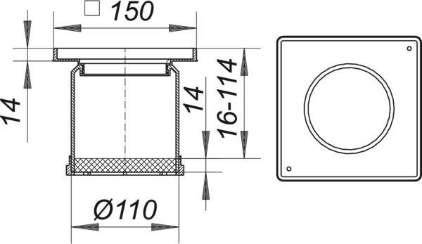 Dallmer Aufsatzrahmen KEN 10 Serie 10 150 x 150 mm, Rahmen ABS, mit Gewindeeinsätzen