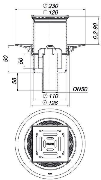 Dallmer Bodenablauf 40 SE 12 Serie 10 120 x 120 mm, DN 50, Polypropylen, hochschlagfest