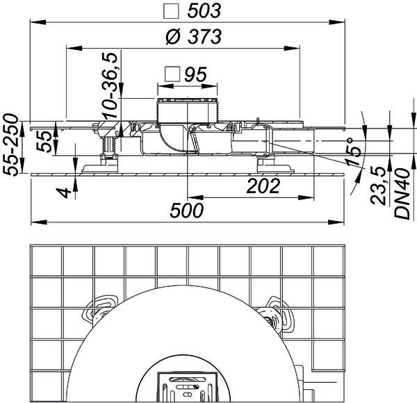 vorkonfektioniertes Set, mit Positionierhilfe, mit Schallschutzmatte DallDrain, Aufsatz DallDrain Pure mit Edelstahlrost im Kunststoffrahmen, bei Einbau gemäß Prüfbericht werden die Schallschutzanforderungen nach DIN 4109 und VDI 4100 erfüllt, Ablaufstutzen DN 40 seitlich, mit Kugelgelenk, verstellbar von 0-15°, Rost aus Edelstahl, Rahmen aus Kunststoff, Polymerbetonkragen mit eingegossener Baustahlmatte, flexible und einklickbare Dichtmanschette zum sicheren Anschluss an Verbundabdichtungen gem. DIN 18534, komplett herausnehmbarer Geruchs- und Reinigungsverschluss, mechanisch wirkend (abweichend von DIN EN 1253), Bauschutzabdeckung, vier schallentkoppelte Montagefüße zur Fixierung und Höheneinstellung 55-250 mm, Aufsatzverlängerung kürzbar für Bodenbeläge 10-36 mm (mit Kleber), Estrichverstärkungselement zum Schutz des Ablaufstutzens, Ablaufgehäuse und Ablaufstutzen Polypropylen, hochschlagfest, Rost Edelstahl 1.4301, Belastungsklasse K3 (300 kg), Aufsatzverlängerung und Rahmen aus ABS, bestehend aus Art.-Nr. 517258, 517326 und 518439