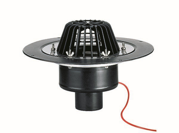 nach DIN EN 1253, mit Edelstahl-Flanschring zur Befestigung von polymeren Dachdichtungsbahnen, Ablaufgehäuse wärmegedämmt, Ablaufstutzen senkrecht, Laubfangkorb, Polypropylen, UV-stabilisiert, Aussparungsmaß 265 x 320 mm, Kernbohrungsmaß Ø 265 mm, H= Dachablauf beheizbar, Direktanschluss an 230 Volt, Heizband nach VDE 0721, Teil 1/3.78 geprüft, Leistungsaufnahme pro Dachablauf 15 W, Rechnungswert für Absicherung pro Dachablauf 0,06 Ampere, empfohlene Absicherung pro Dachanlage 16 Ampere