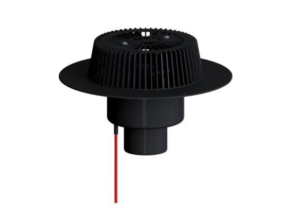 Ablaufleistungen nach DIN EN 1253, für den Einbau in Dachentwässerungsanlagen mit Druckströmung, Ablaufgehäuse wärmegedämmt, Ablaufstutzen senkrecht, Super-Drain-Einsatz, Laubfangkorb, verschraubt, extra breitem Flansch zum Anschluss von FPO-PP-Dachbahnen bzw. PE-Dampfsperrbahnen, Polypropylen, UV-stabilisiert, Direktanschluss an 230 V, Heizband nach VDE 0721, Teil 1/3.78 geprüft, Leistungsaufnahme pro Dachablauf 15 W, Rechnungswert für Absicherung pro Dachablauf 0,06 Ampere, empfohlene Absicherung pro Dachanlage 16 Ampere