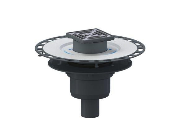 nach DiN EN 1253, Komplettablauf bestehend aus Bodenablaufgehäuse 40 S, TistoDrain Aufstockelement S 10 und einem stufenlos bis zu 40 mm höhen- und bis zu +/-5,5 mm seitenverstellbaren Aufsatz