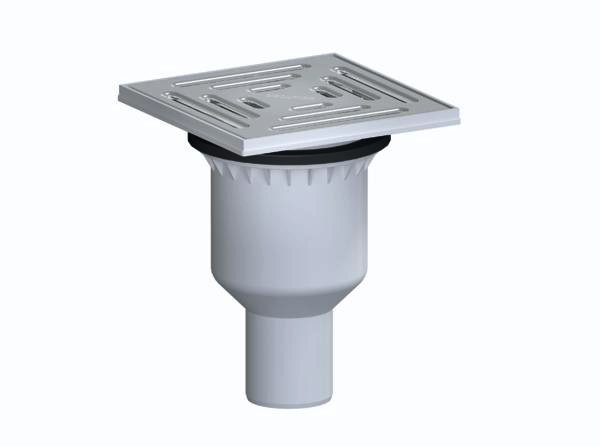 nach DIN EN 274/DIN 19541, Ablaufstutzen DN 50 senkrecht, mit: herausnehmbarem Geruchsverschluss, Rahmen: ABS, 143 x 143 mm, Rost: Edelstahl 1.4301, Belastungsklasse K 3 (300 kg)