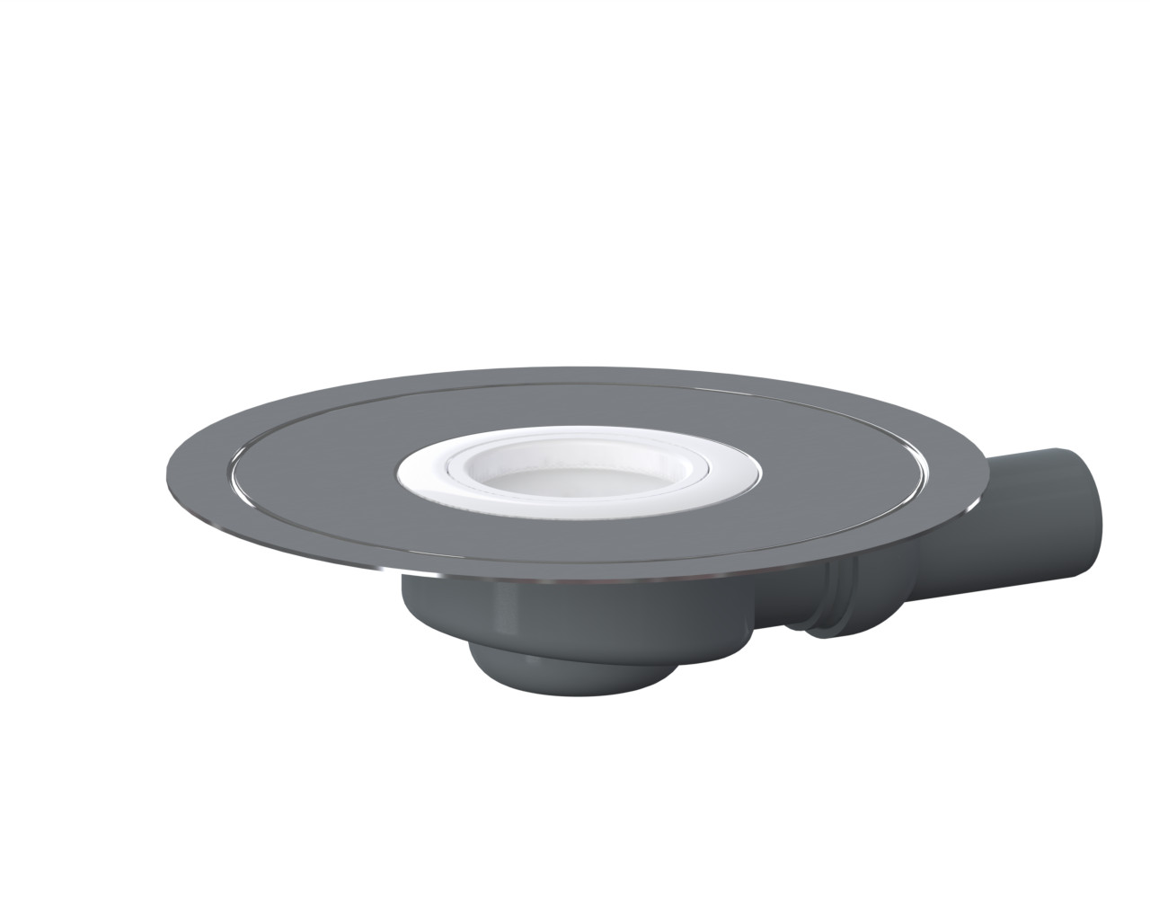 mit Kugelgelenk, verstellbar von 0-15°, Montage- und Verstärkungsblech aus Edelstahl 1.4404, Geruchsverschluss zur Reinigung komplett herausnehmbar, Sperrwasserhöhe 30 mm (abweichend von DIN EN 274), Bauschutzdeckel/Montageschlüssel, Polypropylen