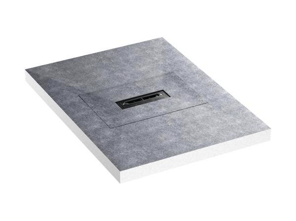 mit zentraler Ablaufstelle zum Einbau mit Duschrinnen Zentrix, CeraNiveau und CeraFrame, Ablaufstutzen DN 40 seitlich, werkzeuglos an drei Seiten variabel montierbar, mit Kugelgelenk verstellbar von 0-15°, Ablaufgehäuse System DallFlex Plan, flexible Dichtmanschette zum sicheren Anschluss an Verbund- und Bahnenabdichtungen gem. DIN 18534, herausnehmbarer Geruchs- und Reinigungsverschluss, Sperrwasserhöhe 30 mm (abweichend von DIN EN 1253), Bauschutzabdeckung, Rollstuhlbefahrbar ab Fliesengröße 5 x 5 cm, expandierter Polystyrol-Hartschaum (EPS), oberseitig mit Glasfasergewebe armiert und mit wasserdichtem Vlies kaschiert, Ablaufgehäuse Polypropylen, hochschlagfest, Ablaufstutzen Polyethylen, schweißbar