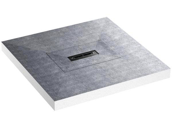 mit zentraler Ablaufstelle zum Einbau mit Duschrinnen Zentrix, CeraNiveau und CeraFrame, Ablaufstutzen DN 50 seitlich, werkzeuglos an drei Seiten variabel montierbar, mit Kugelgelenk verstellbar von 0-15°, Ablaufgehäuse System DallFlex nach DIN EN 1253, flexible Dichtmanschette zum sicheren Anschluss an Verbund- und Bahnenabdichtungen gem. DIN 18534, herausnehmbarer Geruchs- und Reinigungsverschluss, Sperrwasserhöhe 50 mm (gem. DIN EN 1253), Bauschutzabdeckung, Rollstuhlbefahrbar ab Fliesengröße 5 x 5 cm, expandierter Polystyrol-Hartschaum (EPS), oberseitig mit Glasfasergewebe armiert und mit wasserdichtem Vlies kaschiert, Ablaufgehäuse Polypropylen, hochschlagfest