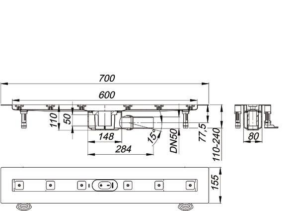 Dallmer Duschrinne CeraLine F 600, L1 600/L2 700 mm, DN 50 DA520029