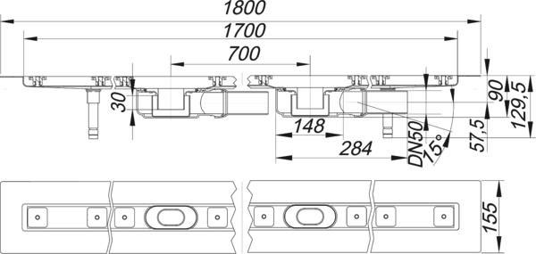 Dallmer Duschrinne CeraLine Plan F Duo 1700, L1 1700/L2 1800/L3 700 mm, DN 50