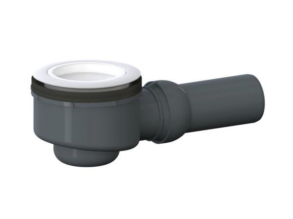 nach DIN EN 274, niedriges Ablaufgehäuse (85 mm) für flache Duschwannen mit einem Ablaufloch von Ø 90 mm, seitlicher Ablaufstutzen DN 50 mit verstellbarem Kugelgelenk von 0-15°, Geruchsverschluss zur Reinigung komplett herausnehmbar, Sperrwasserhöhe 50 mm (gem. DIN EN 274), Bauschutzdeckel/Montageschlüssel, Polypropylen, hochschlagfest