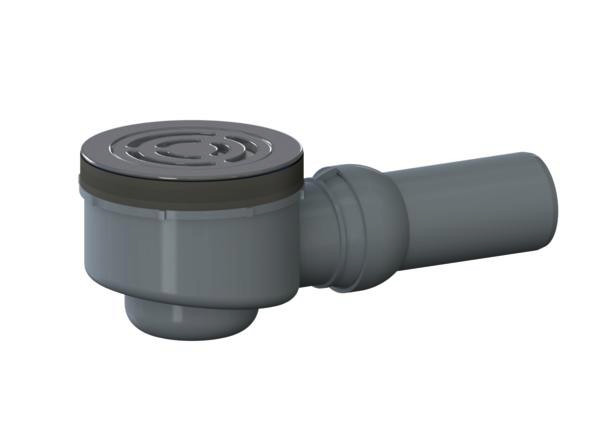 nach DIN EN 274, niedriges Ablaufgehäuse (87 mm) für flache Duschwannen, mit einem Ablaufloch von Ø 90 mm, seitlicher Ablaufstutzen DN 50 mit Kugelgelenk verstellbar von 0-15°, Geruchsverschluss zur Reinigung komplett herausnehmbar, Sperrwasserhöhe 50 mm (gemäß DIN EN 274), Bauschutzdeckel und Montageschlüssel, Ablaufgehäuse Polypropylen, hochschlagfest, Design-Rost Edelstahl 1.4404, massiv 5 mm