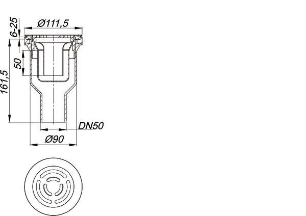nach DIN EN 274, für flache Duschwannen, mit einem Ablaufloch von Ø 90 mm, senkrechter Ablaufstutzen DN 50, Geruchsverschluss zur Reinigung komplett herausnehmbar, Sperrwasserhöhe 50 mm (gemäß DIN EN 274), Bauschutzdeckel und Montageschlüssel, Ablaufgehäuse Polypropylen, hochschlagfest, Design-Rost Edelstahl 1.4404, massiv 5 mm, matt satiniert
