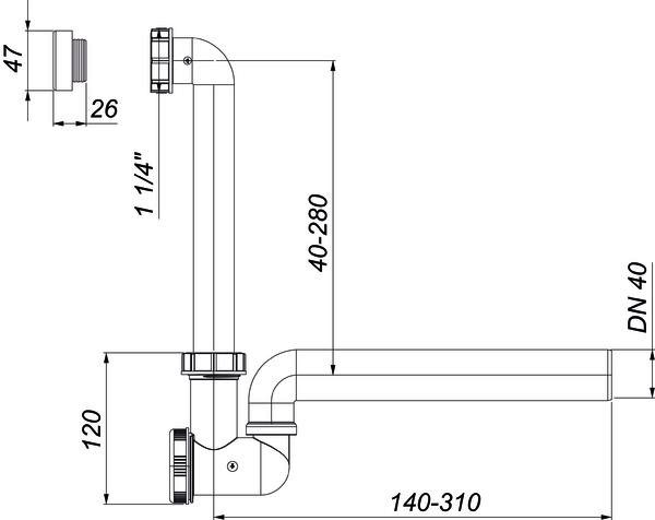 Dallmer Kondensat-Siphon 136, 1 1/4", waagerecht, DN 40