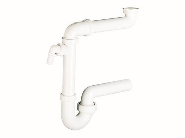 nach DIN EN 274, verstellbarer Kugelgelenk-Ablaufbogen, Raumspar-Verbinder zur platzsparenden Montage, Raumspar-Siphon 121 SL Waschgeräte-Anschluss mit getrennter Kammer für das Abwasser des Waschgerätes, Polyprpylen, hochschlagfest