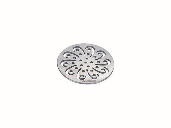 für einteilige Naturstein-Duschtassen, Design-Rost, Oberfläche matt satiniert, mit Ablauföffnungen im Design Aquarius, Edelstahl 1.4404, massiv 5 mm, Ø 120 mm