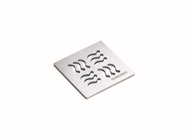 passend zu den Aufsatzrahmen mit Rahmenmaß 120 x 120 mm, Design-Rost, Oberfläche matt satiniert, mit Ablauföffnungen im jeweiligen Design, Edelstahl 1.4404, massiv 5 mm