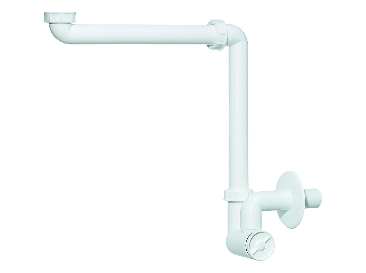 nach DIN EN 274, raumsparend durch stufenlos verstellbare Drehgelenke, speziell für Waschtischunterbauten und barrierefreie Waschtische, herausziehbarer Reinigungseinsatz, Abdeckrosette