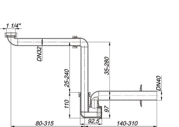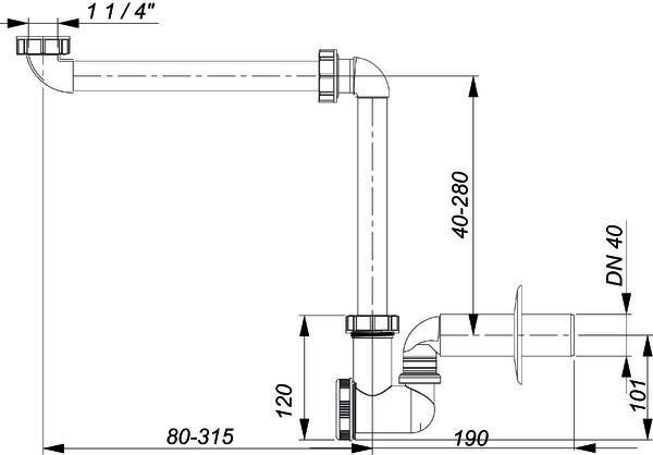 Dallmer Waschtisch-Möbel-Siphon 137 DN 40, hochschlagfest, PP DA051110