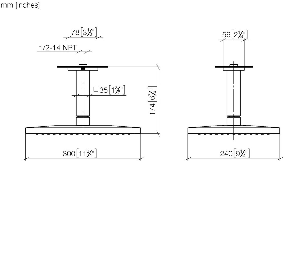 mit Antikalk-System, Regenbrause 300 x 240 mm, Deckenabstand Unterkante Brause 165 mm, Rosette 78 x 55 mm wahlweise, Anschluss 1/2", Durchfluss max. 12 l/min