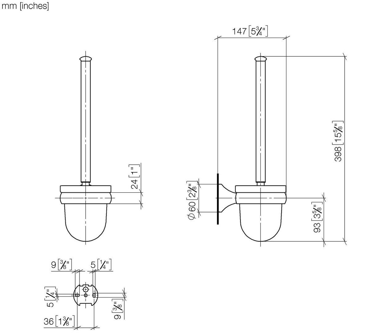 Dornbracht WC-Bürstengarnitur Madison Wandmodell, Glaseinsatz Kristallglas, matt, Dark Platinum gebürstet