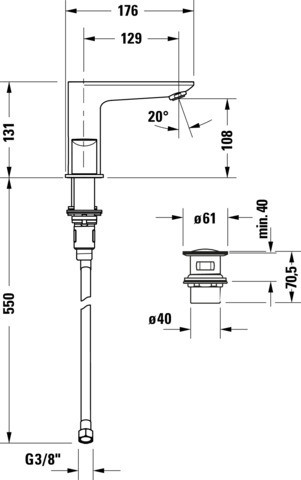 Standmontage, Höhe 131 mm, Keramikmischsystem, Strahlformer mit EasyClean, flexible Anschlussschläuche 3/8", Normalstrahl, mit Push-open Ablaufgarnitur