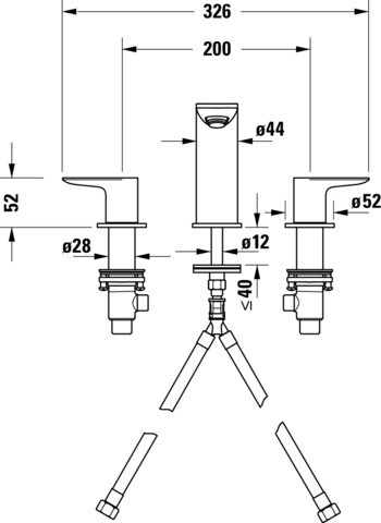Duravit 3-Loch-Waschtisch-Armatur Wave Ausladung 129mm, chrom