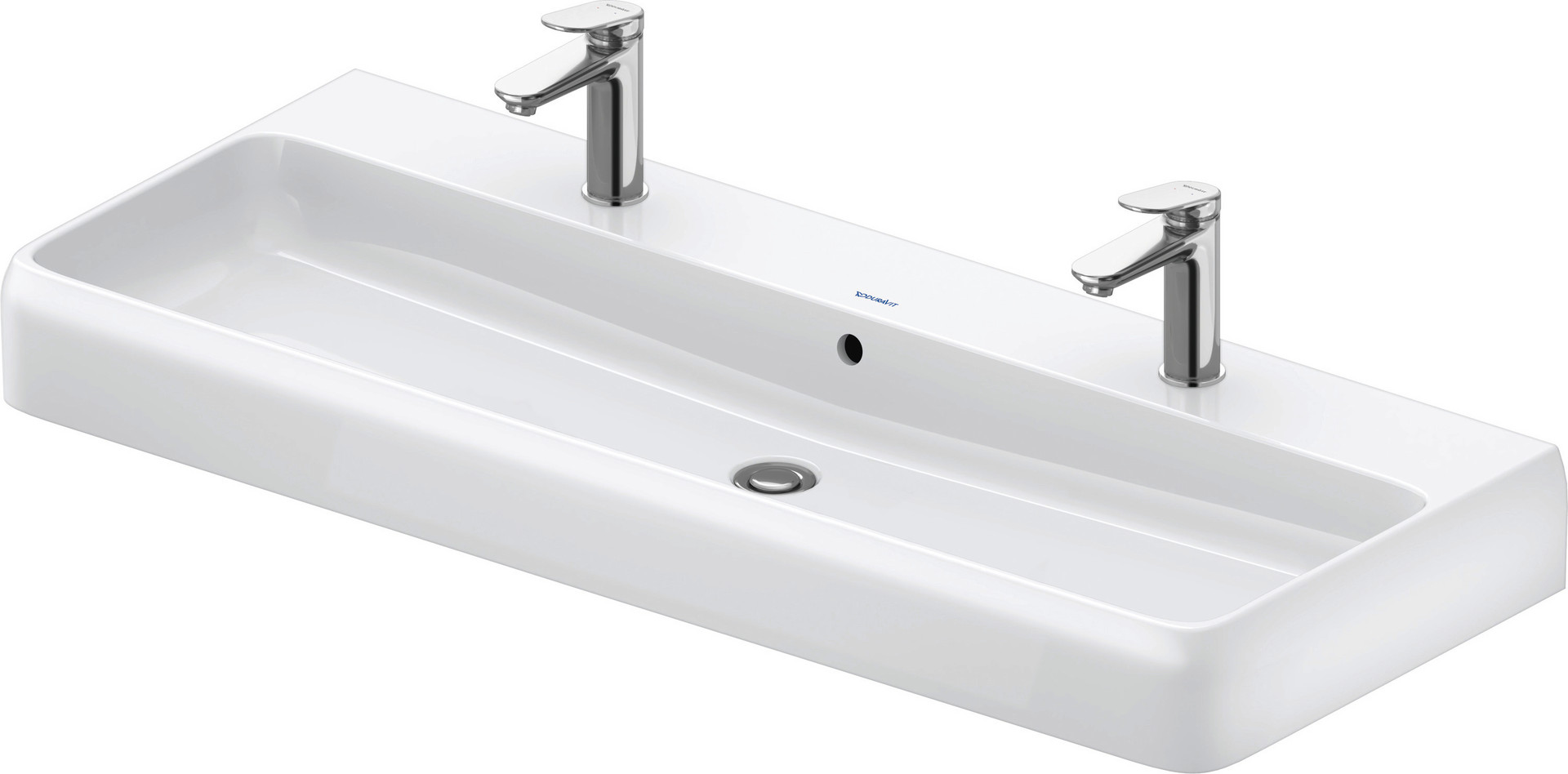 Duravit Aufsatz-Doppelwaschtisch Qatego 120x47cm, mit 2 Hahnlöcher, Überlauf, Hahnlochbank, geschliffen, weiß Hochglanz HygieneGlaze