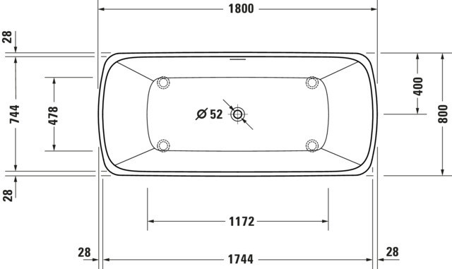 Duravit Badewanne Qatego 180 x 80 cm, freistehend, 2 Rückenschräge, weiß