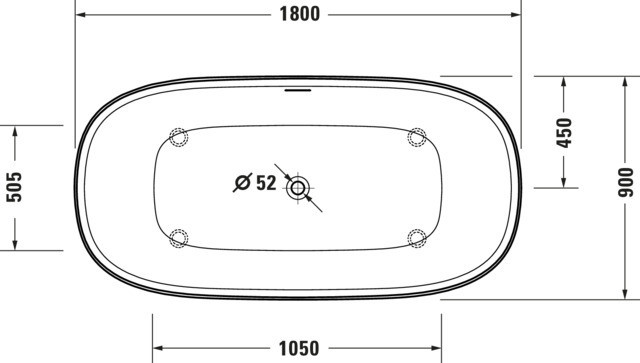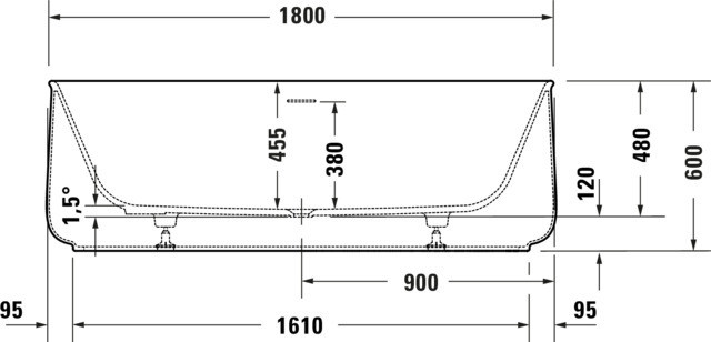 zentraler Ablauf, mit nahtloser Verkleidung, Material Mineralguss, Materialart DuraSolid a, 700462 00000 0000 unterschiedliche Rückenschräge an Kopfseite, Nutzinhalt 306/366 l, mit Fußgestell, Ab- und Überlaufgarnitur