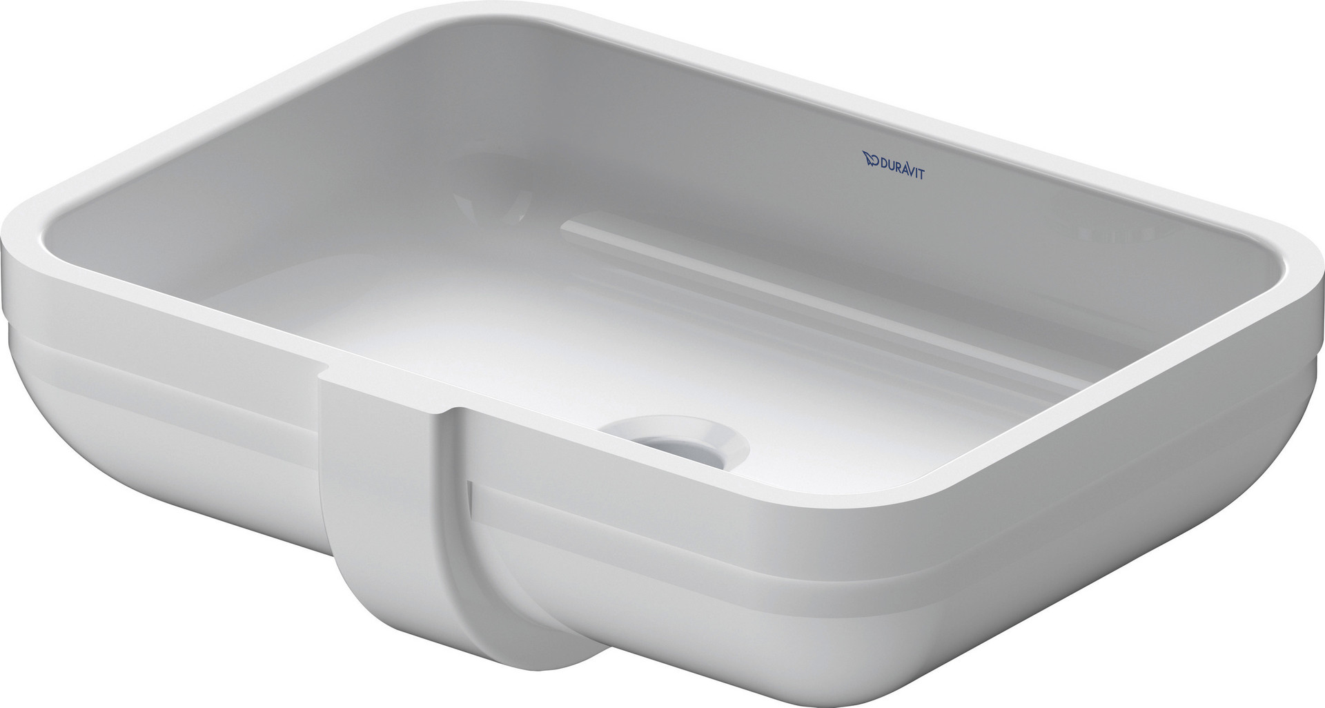 Duravit Einbau-Waschtisch Happy D.2 48x34,5cm, Einbau von unten, ohne Hahnloch, Hahnlochbank, mit Überlauf, weiß WonderGliss