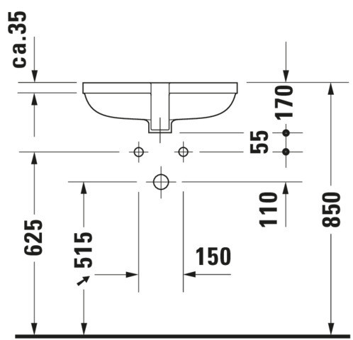 Duravit Einbau-Waschtisch Happy D.2 48x34,5cm, Einbau von unten, ohne Hahnloch, Hahnlochbank, mit Überlauf, weiß DU0457480000