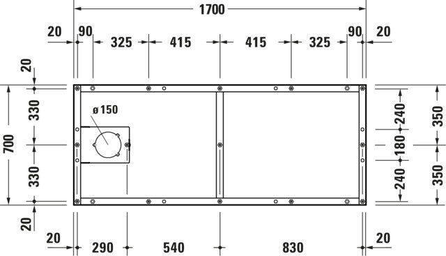 Duravit Fußgestell 170 x 70 cm, höhenverstellbar von 7-10 cm