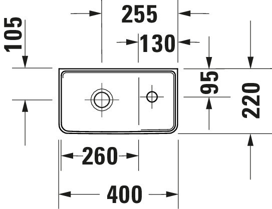 aus Sanitärkeramik, 220 x 400 x 120 mm, mit Hahnlochbank, wandhängend