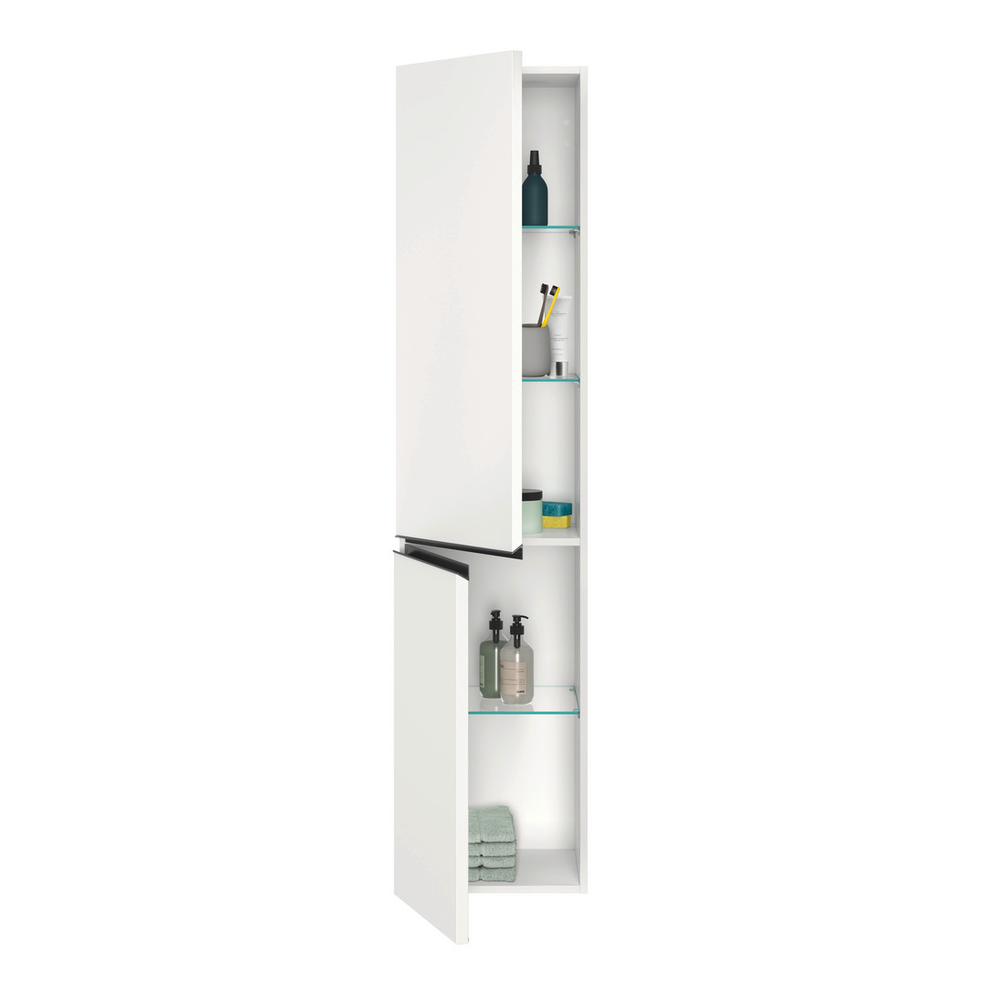 Duravit Hochschrank wandhängend Sivida 40x177x37,4cm, 3 Glasböden, Griff diamantschwarz, links, Weiß Matt